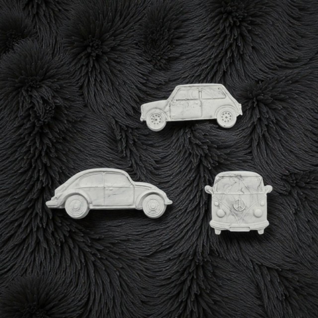 Gi kjøleskapet ditt et nostalgisk preg med disse sjarmerende kjøleskapsmagnetene. Settet betår av tre hvite biler med marmoreffekt. Hver magnet er detaljert utformet i lett materiale med et håndlaget preg, og festes enkelt til kjøleskap eller andre magnetiske overflater.
