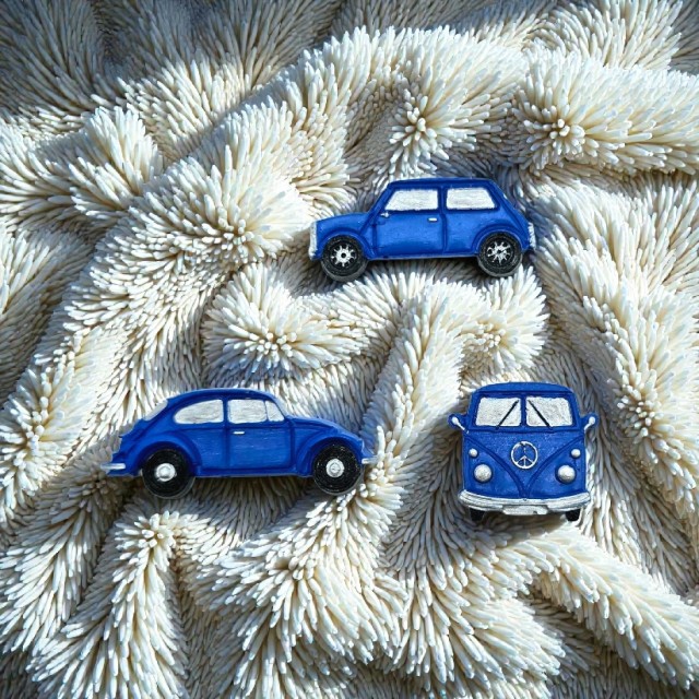 Gjør kjøkkenet ditt livligere med disse stilige håndmalte kjøleskapsmagnetene, inspirert av ikoniske bilmodeller. Settet består av tre biler - i svart, rød eller blå med sølv detaljer. Disse magnetene kombinerer retro sjarm med praktisk funksjon, og passer perfekt til kjøleskapet eller andre magnetiske overflater.. Perfekt gaveide for bilentusiaster og retroelskere.