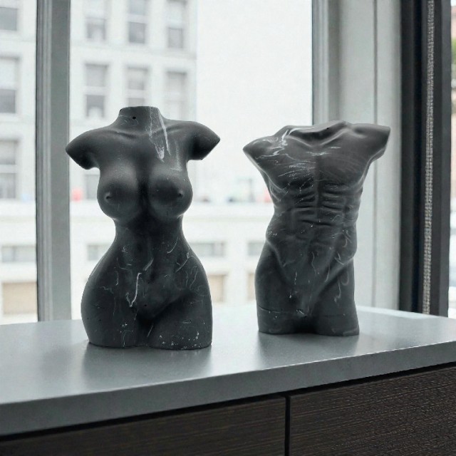 Disse elegante kroppsskulpturene er en hyllest til den menneskelige form - rå, vakker og tidløs. Hver figur er støpt i solid materiale med en finish som etterligner marmor. Detaljene i silhuetten fremhever kroppens naturlige linjer, muskler og former, og gjør skulpturene til både kunstneriske og dekorative elemnter i hjemmet.