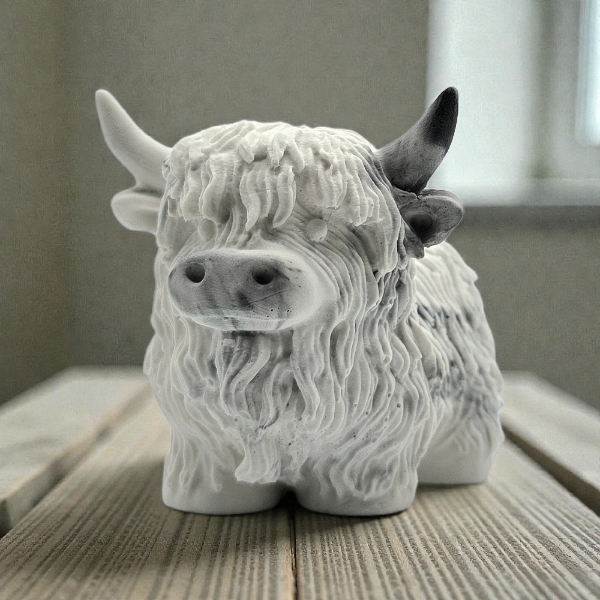 Denne lille høylandsfe-figuren kombinerer rustikk sjarm med et moderne, dekorativt uttrykk. Med naturtro detaljer i den karakteriske lange pelsen og hornene, blir den et unikt innslag i interiøret. Den nøytrale hvite fargen med grå marmoreffekt gjør at den kan plasseres i ulike miljøer - fra minimalitisk til landlig stil. Den marmorerte effekten vil variere hver gang - så gjør hver enkelt unik.