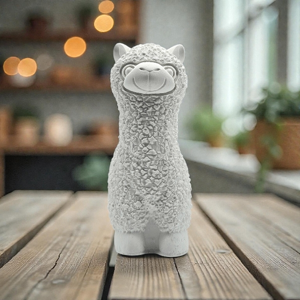 Lamaen er støpt i solid materiale med vakker strukturert overflate som gir et elegant og dekorativt inntrykk. Enten du plasserer den i bokhyllen, på et sidebord eller som et blikkfang i stua, sprer den både glede og karakter.