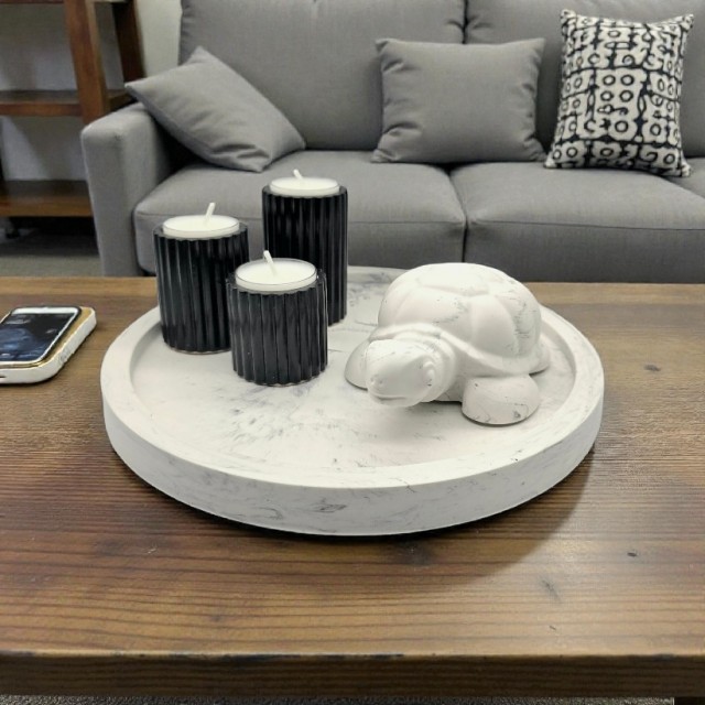 En elegant og sjarmerende skilpaddefigur med et tidløst inntrykk og en matt marmor-inspirert overflate. Den stiliserte formen kombinert med den myke, steinlignende finishen gjør ''Turtini'' til et vakkert og rolig innslag i ethvert interiørstil - fra moderne og minimalistisk til naturlig og rustikk.