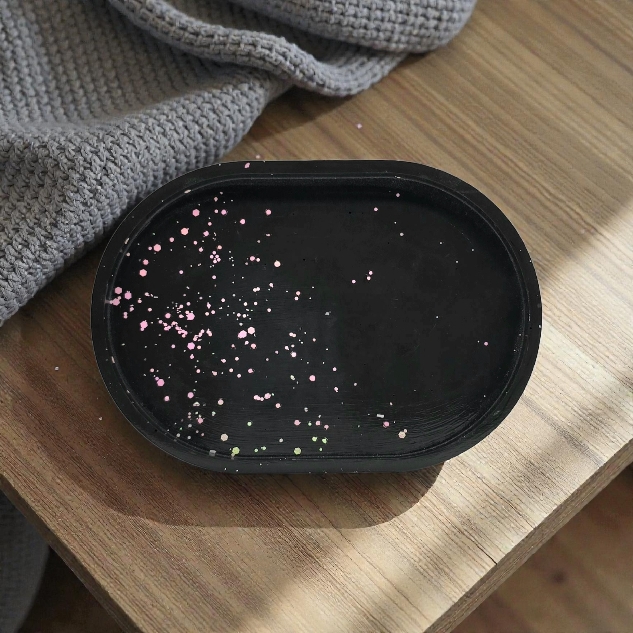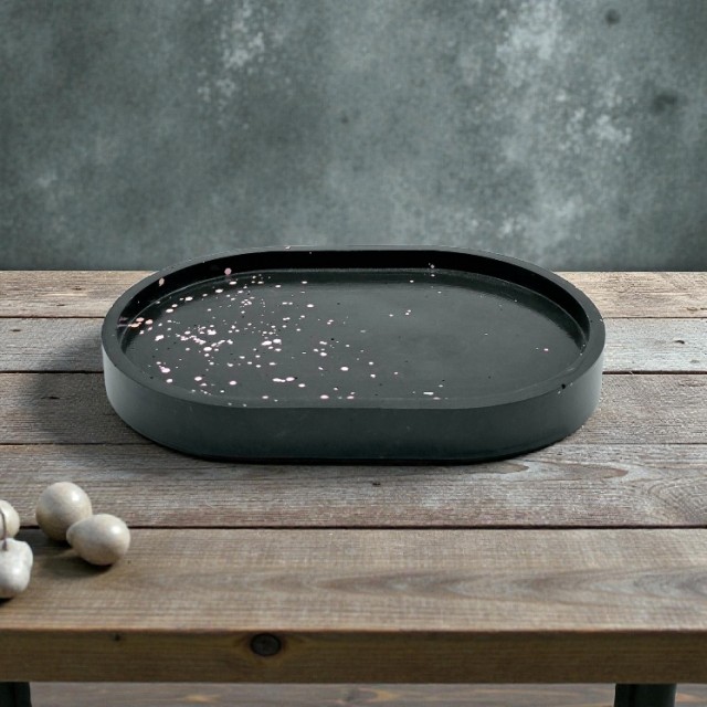 Skap en glamorøs atmosfære med dette elegante, ovale fatet i sort, dekorert med delikate rosa glitterdetaljer. ''Twilight Sparkle'' er et limited edition fat og er perfekt som dekorfat på sminkebordet, til smykker, lys eller små favoritter. Det glitrende inntrykket gir et hint av luksus og passer perfekt i både moderne og romantiske omgivelser.