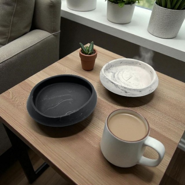 Velg mellom sort med marmoreffekt for et moderne og stilrent uttrykk, eller hvit med marmoreffekt for et lyst og elegant preg. Perfekt både alene eller i kombinasjon for et balansert interiør.