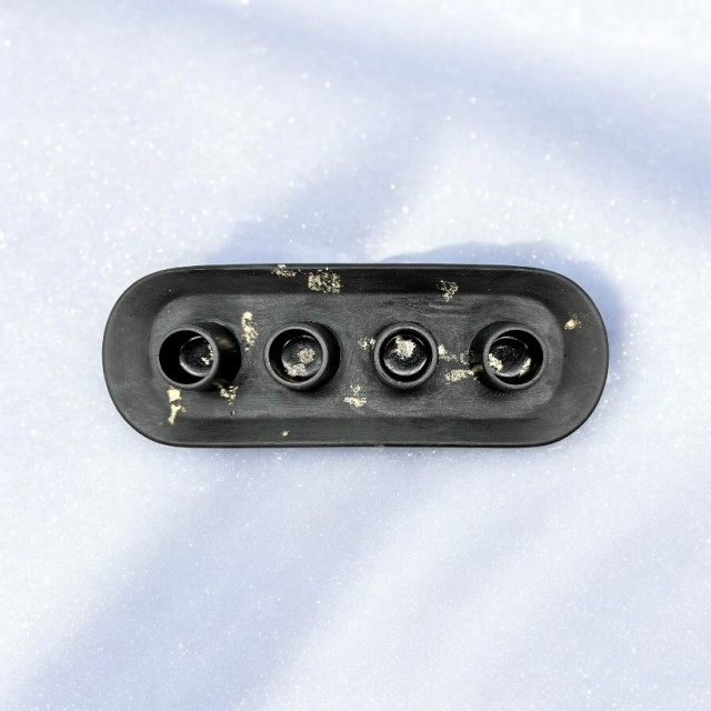 Designet er minimalistisk og moderne, med en avlang base og fire jevnt fordelt holdere, som gjør den perfekt både som et dekorativt midtpunkt på spisebordet eller som en elegant detalj i vinduskarmen.