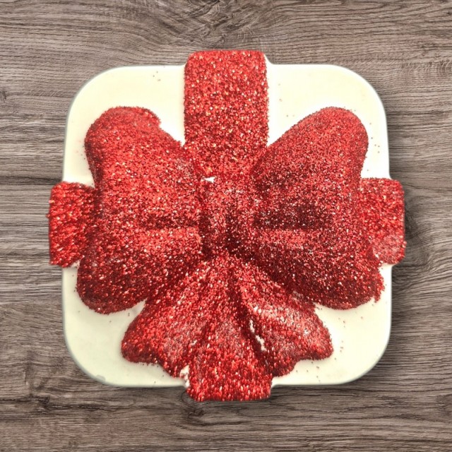 Disse sjarmerende små dekorasjonene er formet som gaver med en glitrende rød sløyfe som gir et festlig preg. Hver dekorasjon har en elegant hvit base som skaper kontrast til den dype røde glitterdetaljen. De finnes i både firkantet og hjerteformet variant, noe som gjør dem perfekte å kombinere sammen - men er like fin alene.