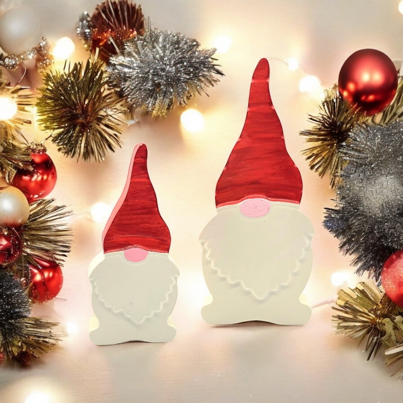 Størrelse: Liten nisse 12x5,5x2cm og stor nisse 17x9x3cm