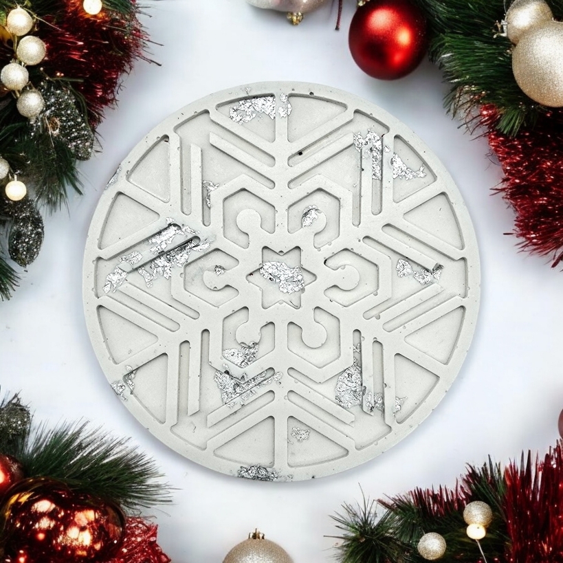 Gi borddekkingen et vinterlig og elegant preg med disse vakre glassbrikkeneinspirert av snøkrystallens symmetri. Med et detaljert mønster og skinnende metalliske innslag blir de både praktiske og dekorative - en perfekt kombinasjon for jul og vinterens festligheter.