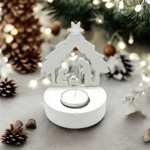 Denne unike lysholderen kombinerer vakker juledekor med den klassiske fremstillingen av julekrybben. Når lyset tennes, kaster glammes et varmt skinn over motivet og gir en stemningsfull påminnelse om julens budskap. Perfekt som bordpynt, på peisfylla eller i vinduet, der den vil spre både ro og høytidsglede.