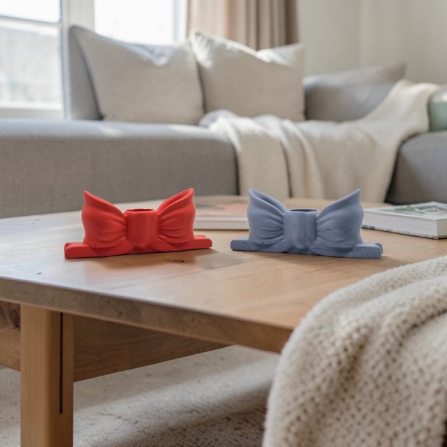Denne unike sløyfeformede lysholderen i rød, kombinerer myke former med et rått og moderne inntrykk. Perfekt for deg som ønsker å tilføre interiøret en kontrast - med feminin eleganse. Den håndstøpte finishen gir hver lysholder et særpreg med små variasjoner og naturlige teksturer.