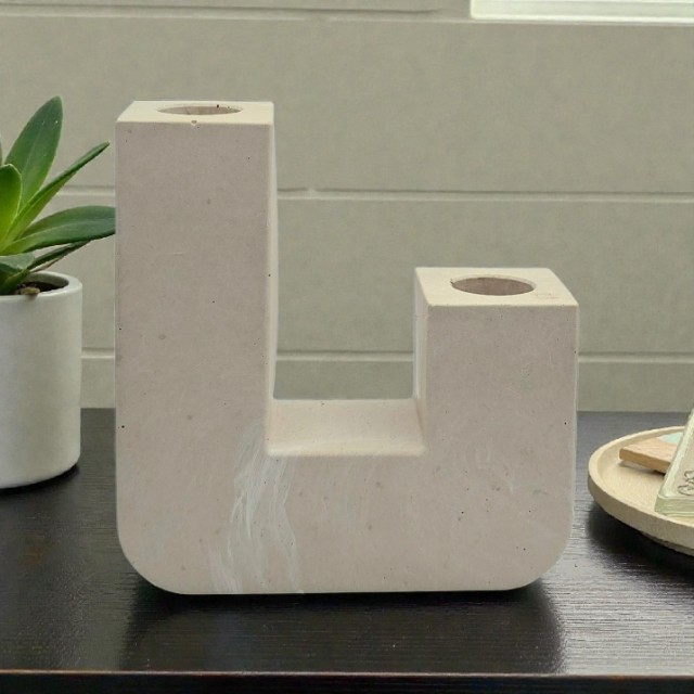 Denne moderne ''L-formede'' lysholderen i marmorert design gir et uttrykk for stilrent dekor med karakter. Den arkitektoniske formen gir et stramt og sofistikert inntrykk, samtidig som de unike marmoreringene gjør hver lysholder helt unik.