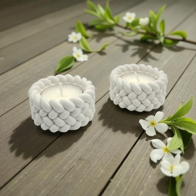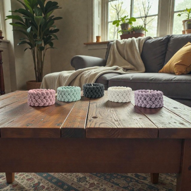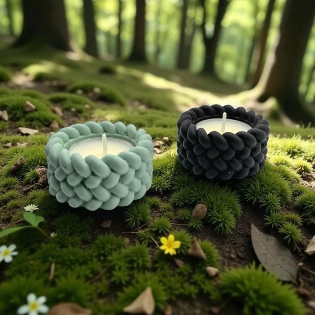 Disse elegante telysholderene kombinerer moderne minimalisme med et tidløst design, håndflettet uttrykk. Den unike overflatestrukturen gir et mykt og stilfullt preg, samtidig som de skaper en koselig atmosfære når lyset tennes. Perfekte som dekor på bordet, i vinduskarmen eller som en del av en større oppdekning. Finnes i flere farger - blant annet sort for et klassisk uttrykk, og dus grønn for en mer naturlig og frisk stemning.