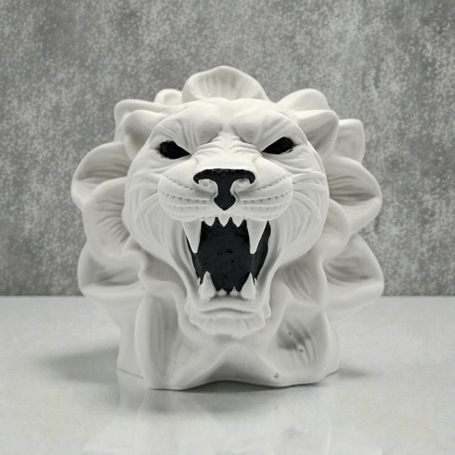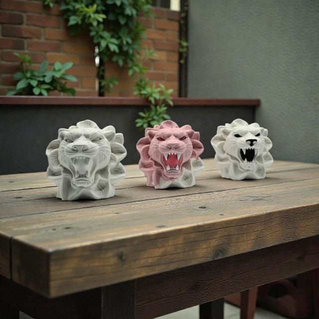 Denne dekorative tiger figuren er et dristig statement-piece som utstråler kraft, energi og attitude. Med åpent gap, markerte trekk og en blomsterinspirert ramme rundt hodet får figuren et unikt uttrykk som balanserer det rå og det kunstneriske - perfekt for deg som liker interiør med karakter.