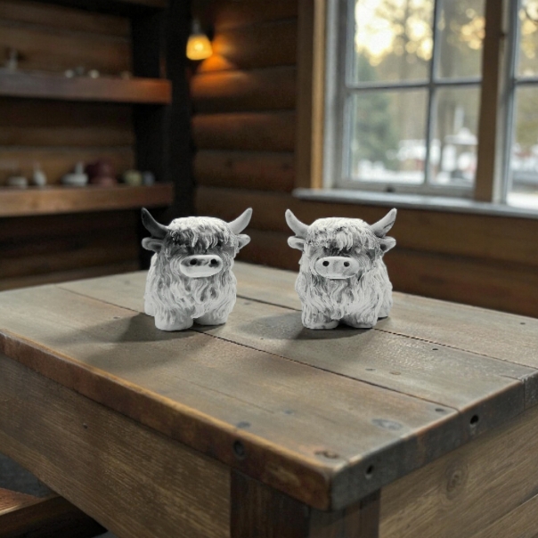 Disse små høylandsfe-figurene kombinerer rustikk sjarm med et moderne, dekorativt uttrykk. Med naturtro detaljer i den karakteriske lange pelsen og hornene, blir den et unikt innslag i interiøret. Den nøytrale hvite fargen med grå marmoreffekt gjør at den kan plasseres i ulike miljøer - fra minimalitisk til landlig stil.