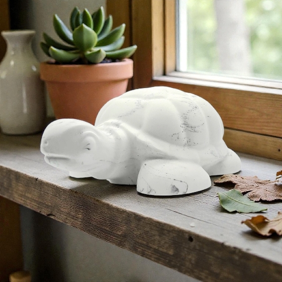 En elegant og sjarmerende skilpaddefigur med et tidløst inntrykk og en matt marmor-inspirert overflate. Den stiliserte formen kombinert med den myke, steinlignende finishen gjør ''Turtini'' til et vakkert og rolig innslag i ethvert interiørstil - fra moderne og minimalistisk til naturlig og rustikk.