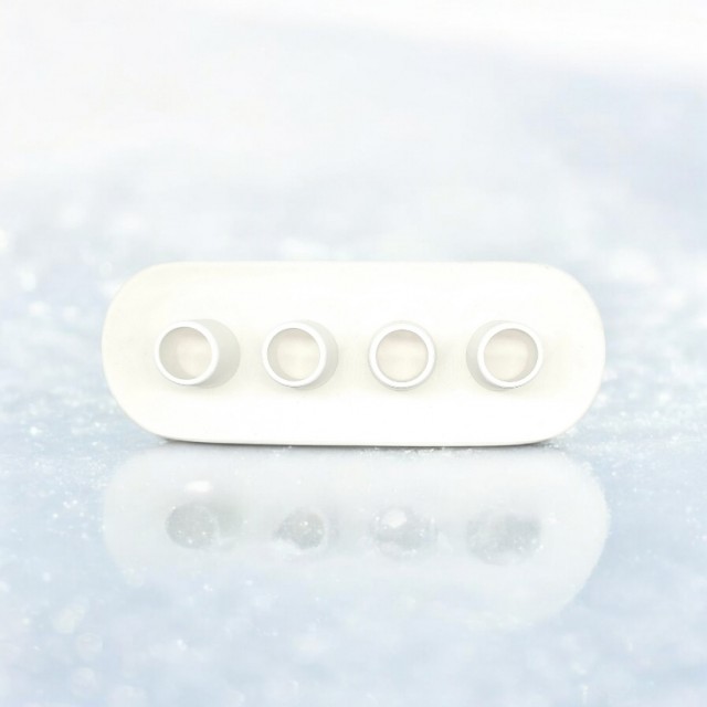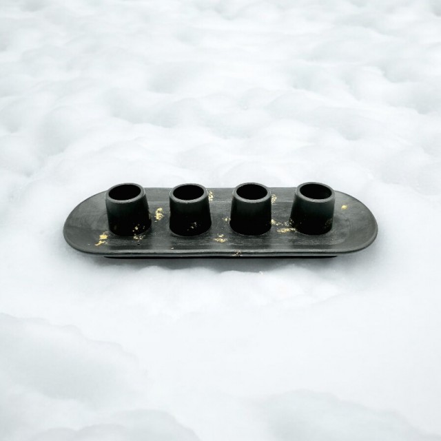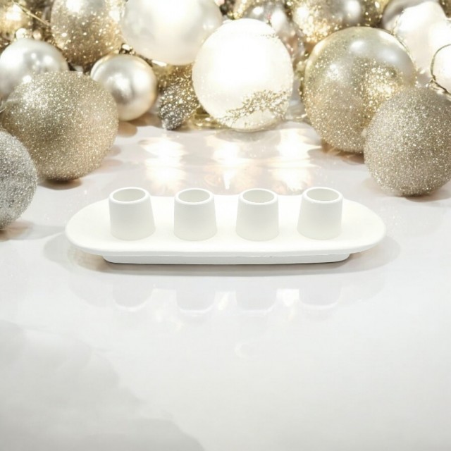 Designet er minimalistisk og moderne, med en avlang base og fire jevnt fordelt holdere, som gjør den perfekt både som et dekorativt midtpunkt på spisebordet eller som en elegant detalj i vinduskarmen.
