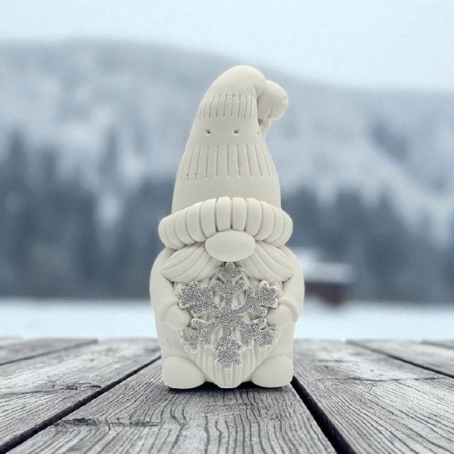 Denne koselige lille nissen bringer ekte julestemning inn i hjemmet. Med sin klassiske nisselue, frodige skjegg og et glitrende snøfnugg mellom hendene, sprer den både varme og vintermagi. Detaljene er nøye utformet for å gi et sjarmerende uttrykk - perfekt som dekorasjon på peishylla, julebordet eller som en del av et nisse-og vinterlandskap.