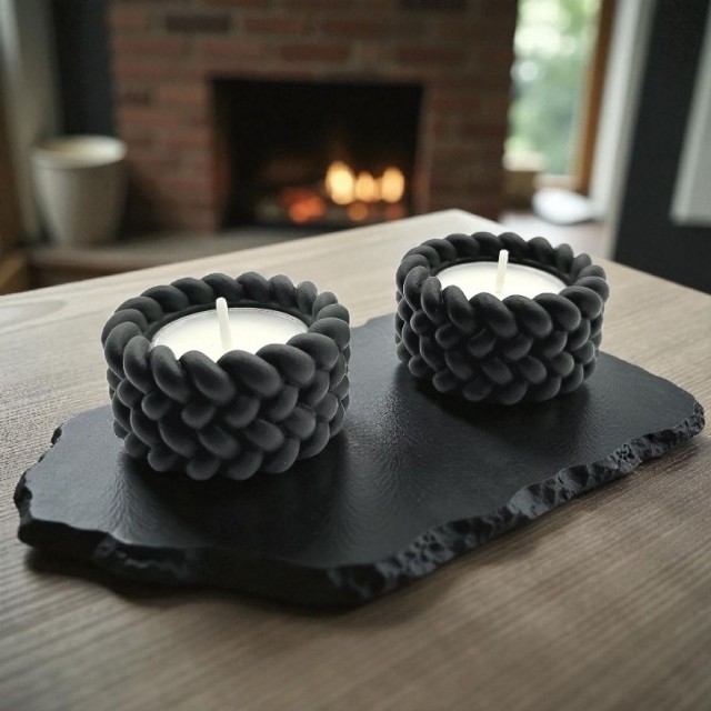 Disse elegante telysholderene kombinerer moderne minimalisme med et tidløst design, håndflettet uttrykk. Den unike overflatestrukturen gir et mykt og stilfullt preg, samtidig som de skaper en koselig atmosfære når lyset tennes. Perfekte som dekor på bordet, i vinduskarmen eller som en del av en større oppdekning. Finnes i flere farger - blant annet sort for et klassisk uttrykk, og dus grønn for en mer naturlig og frisk stemning.