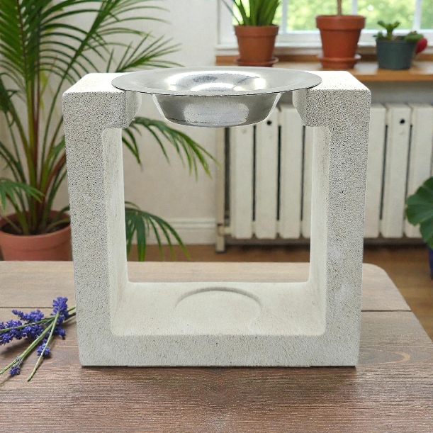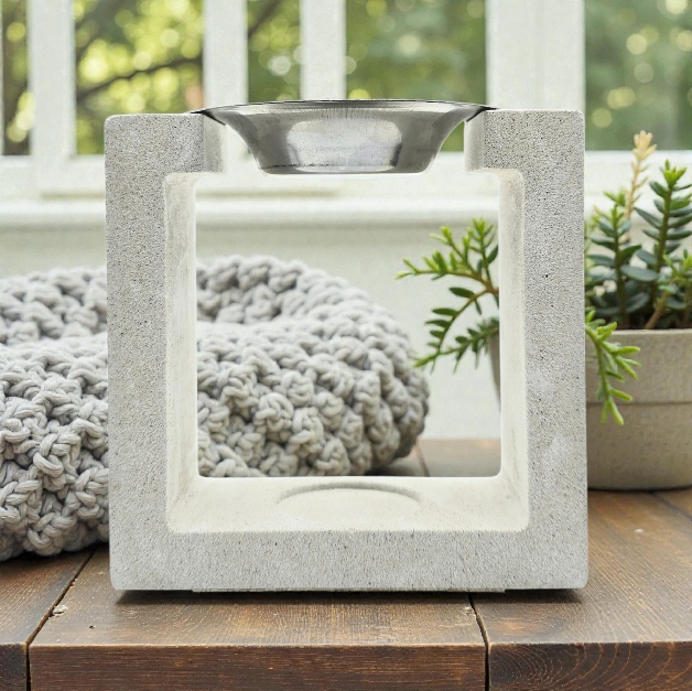 Denne stilrene voksbrenneren kombinerer moderne arkitektur med rolig, skandinavisk estetikk. Den åpne, firkantede formen gir et lett og luftig uttrykk, samtidig som den solide konstruksjonen gir stabilitet og kvalitet. Perfekt for duftvoks eller eteriske oljer - et dekorativt element som skaper varme, stemning og balanse i rommet.