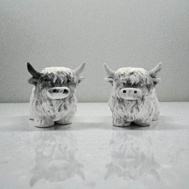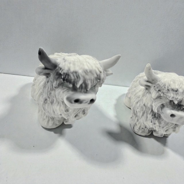 Disse små høylandsfe-figurene kombinerer rustikk sjarm med et moderne, dekorativt uttrykk. Med naturtro detaljer i den karakteriske lange pelsen og hornene, blir den et unikt innslag i interiøret. Den nøytrale hvite fargen med grå marmoreffekt gjør at den kan plasseres i ulike miljøer - fra minimalitisk til landlig stil.