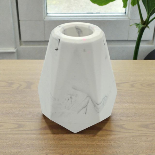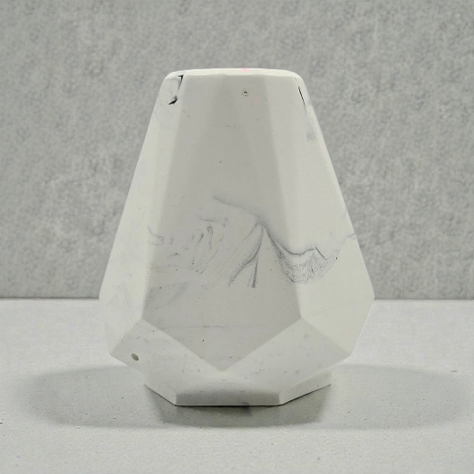 Denne mini vasen kombinerer skulpturell form me et mykt, marmorinspirert uttrykk. Den fasetterte silhuetten gir et moderne preg, men de lyse nyanseneskaper en tidløs og harmonisk helhet. Perfekt til tørkede strå, små blomster eller som et dekorobjekt alene.